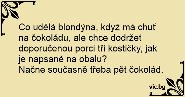 Co udělá blondýna, když má chuť na čokoládu, ale chce dodržet doporučenou porci tři kostičky, jak je napsané na obalu?