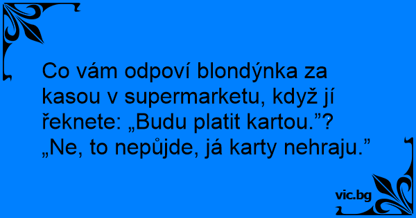 Co vám odpoví blondýnka za kasou v supermarketu, když jí řeknete: „Budu platit kartou.”?