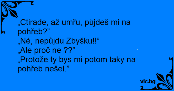 „Protože ty bys mi potom taky na pohřeb nešel.”
