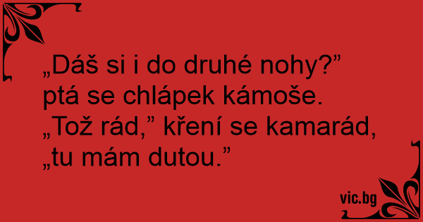 „Dáš si i do druhé nohy?” ptá se chlápek kámoše.
