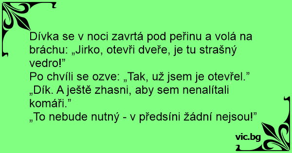 „Dík. A ještě zhasni, aby sem nenalítali komáři.”