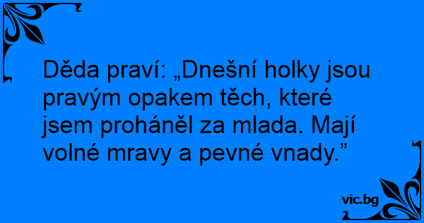 Děda praví: „Dnešní holky jsou pravým opakem těch, které jsem proháněl za mlada. Mají volné mravy a pevné vnady.”