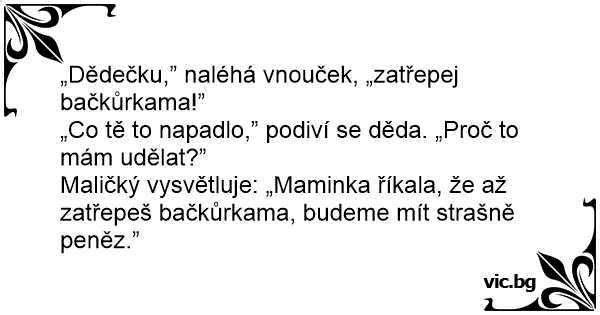 „Dědečku,” naléhá vnouček, „zatřepej bačkůrkama!”