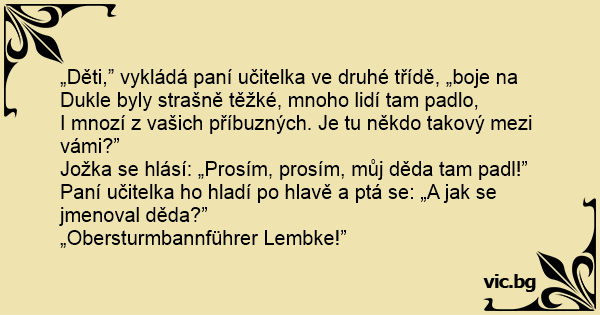 Jožka se hlásí: „Prosím, prosím, můj děda tam padl!”