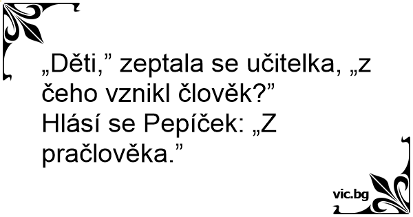 „Děti,” zeptala se učitelka, „z čeho vznikl člověk?”