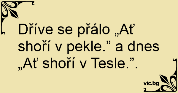 Dříve se přálo „Ať shoří v pekle.” a dnes „Ať shoří v Tesle.”.