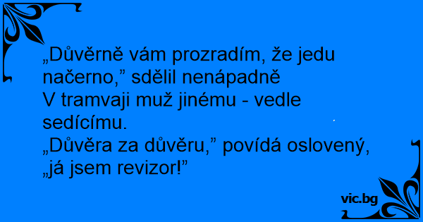 „Důvěra za důvěru,” povídá oslovený, „já jsem revizor!”