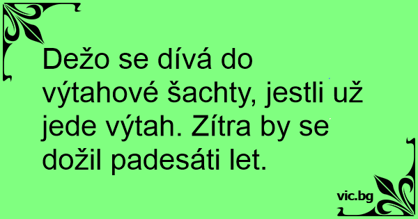 Dežo se dívá do výtahové šachty, jestli už jede výtah. Zítra by se dožil padesáti let.