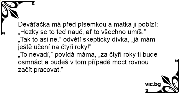 „Tak to asi ne,” odvětí skepticky dívka, „já mám ještě učení na čtyři roky!”