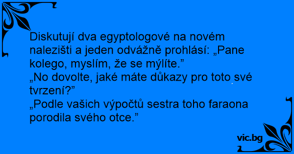 Diskutují dva egyptologové na novém nalezišti a jeden odvážně prohlásí: „Pane kolego, myslím, že se mýlíte.”