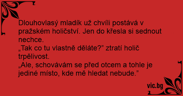 „Tak co tu vlastně děláte?” ztratí holič trpělivost.
