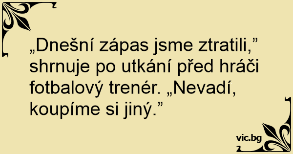 „Dnešní zápas jsme ztratili,” shrnuje po utkání před hráči fotbalový trenér. „Nevadí, koupíme si jiný.”