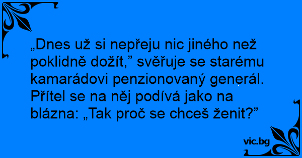 „Dnes už si nepřeju nic jiného než poklidně dožít,” svěřuje se starému kamarádovi penzionovaný generál.