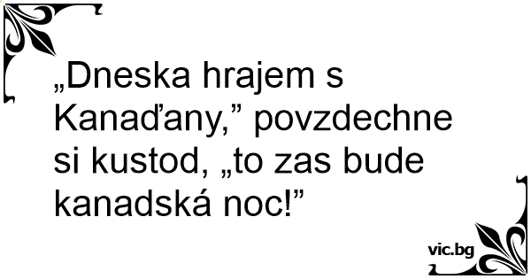 „Dneska hrajem s Kanaďany,” povzdechne si kustod, „to zas bude kanadská noc!”