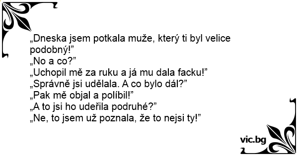 „Dneska jsem potkala muže, který ti byl velice podobný!”