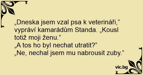 „Dneska jsem vzal psa k veterináři,” vypráví kamarádům Standa. „Kousl totiž moji ženu.”