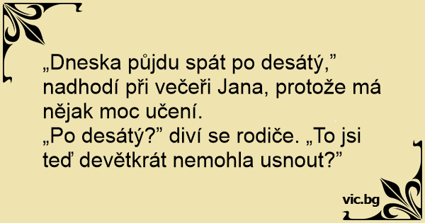 „Dneska půjdu spát po desátý,” nadhodí při večeři Jana, protože má nějak moc učení.