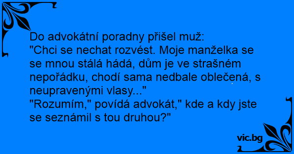 "Rozumím," povídá advokát," kde a kdy jste se seznámil s tou druhou?"
