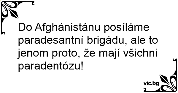 Do Afghánistánu posíláme paradesantní brigádu, ale to jenom proto, že mají všichni paradentózu!