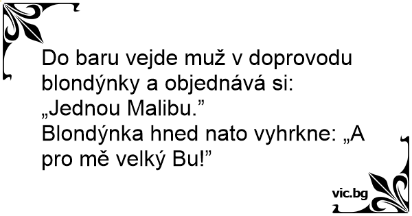 Do baru vejde muž v doprovodu blondýnky a objednává si: „Jednou Malibu.”