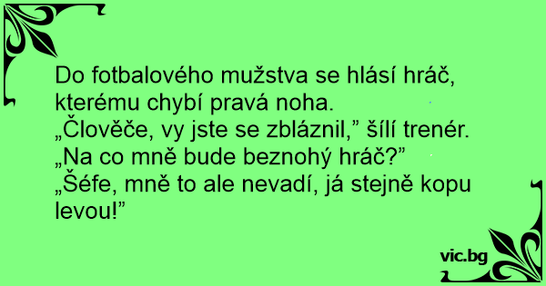 „Člověče, vy jste se zbláznil,” šílí trenér. „Na co mně bude beznohý hráč?”