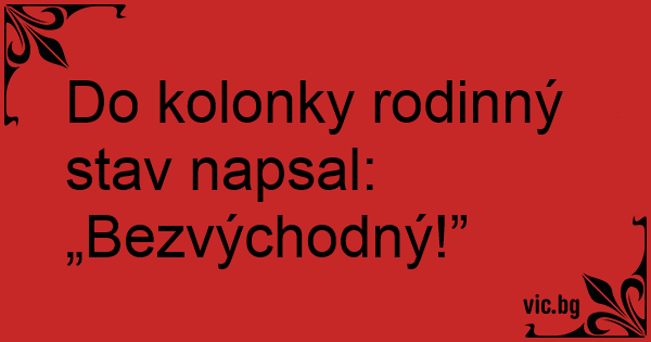 Do kolonky rodinný stav napsal: „Bezvýchodný!”
