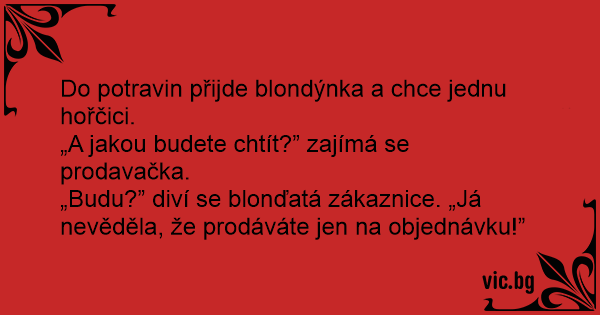 Do potravin přijde blondýnka a chce jednu hořčici.