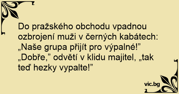 „Dobře,” odvětí v klidu majitel, „tak teď hezky vypalte!”