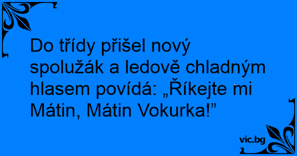 Do třídy přišel nový spolužák a ledově chladným hlasem povídá: „Říkejte mi Mátin, Mátin Vokurka!”