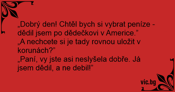 „Dobrý den! Chtěl bych si vybrat peníze - dědil jsem po dědečkovi v Americe.”