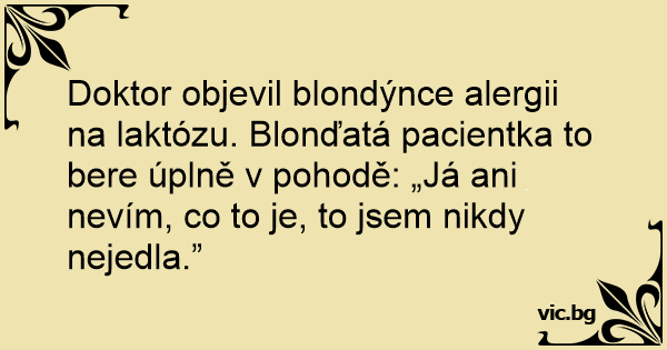 Doktor objevil blondýnce alergii na laktózu. Blonďatá pacientka to bere úplně v pohodě: „Já ani nevím, co to je, to jsem nikdy nejedla.”