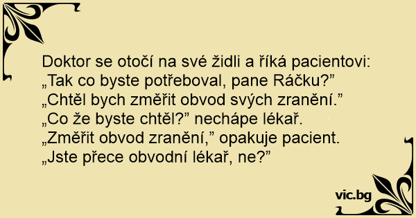 „Změřit obvod zranění,” opakuje pacient. „Jste přece obvodní lékař, ne?”