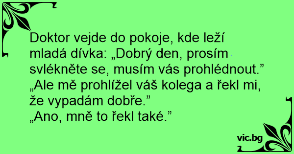 Doktor vejde do pokoje, kde leží mladá dívka: „Dobrý den, prosím svlékněte se, musím vás prohlédnout.”