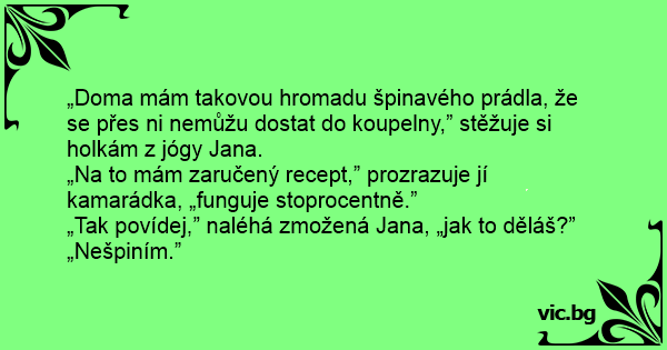„Doma mám takovou hromadu špinavého prádla, že se přes ni nemůžu dostat do koupelny,” stěžuje si holkám z jógy Jana.