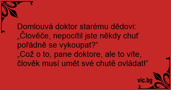 Domlouvá doktor starému dědovi: „Člověče, nepocítil jste někdy chuť pořádně se vykoupat?”