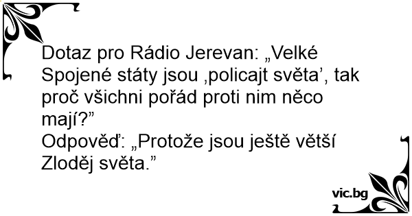 Dotaz pro Rádio Jerevan: „Velké Spojené státy jsou ‚policajt světa’, tak proč všichni pořád proti nim něco mají?”