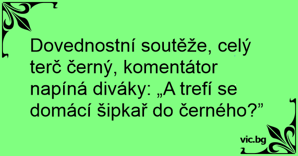 Dovednostní soutěže, celý terč černý, komentátor napíná diváky: „A trefí se domácí šipkař do černého?”