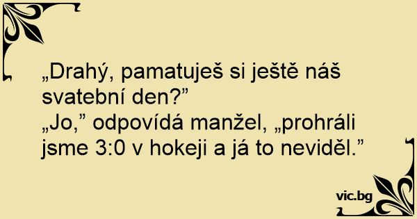 „Jo,” odpovídá manžel, „prohráli jsme 3:0 v hokeji a já to neviděl.”