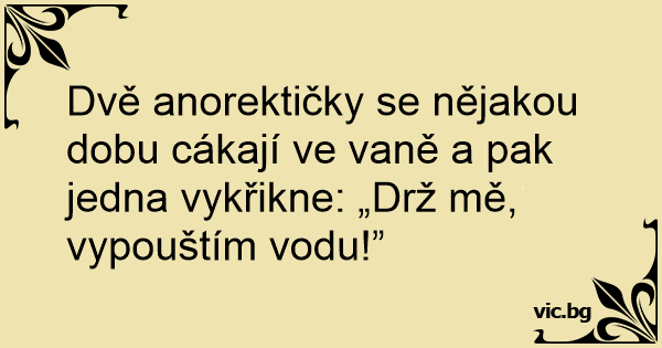 Dvě anorektičky se nějakou dobu cákají ve vaně a pak jedna vykřikne: „Drž mě, vypouštím vodu!”