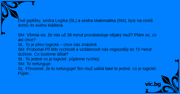 Вървели си две монахини, едната с математическо а другата с логическо мислене. По едно време тази с логическото казала: