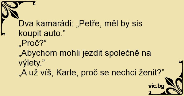 Dva kamarádi: „Petře, měl by sis koupit auto.”