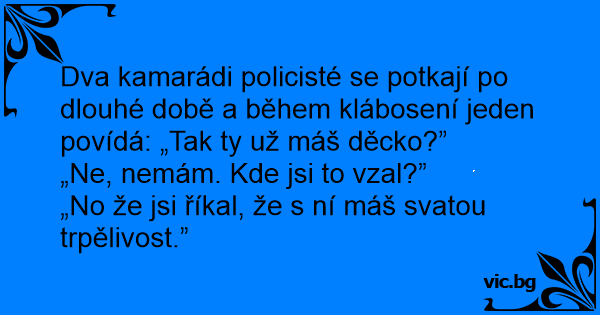 Dva kamarádi policisté se potkají po dlouhé době a během klábosení jeden povídá: „Tak ty už máš děcko?”