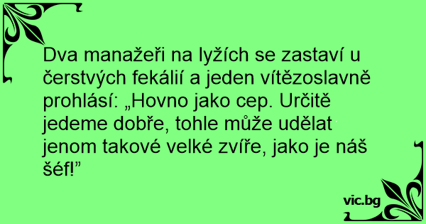 Dva manažeři na lyžích se zastaví u čerstvých fekálií a jeden vítězoslavně prohlásí: „Hovno jako cep. Určitě jedeme dobře, tohle může udělat jenom takové velké zvíře, jako je náš šéf!”