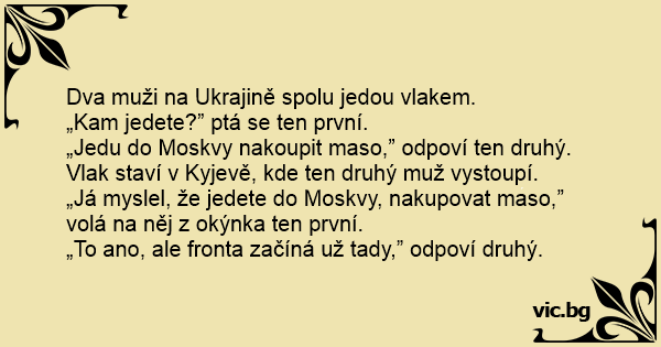 „Jedu do Moskvy nakoupit maso,” odpoví ten druhý.