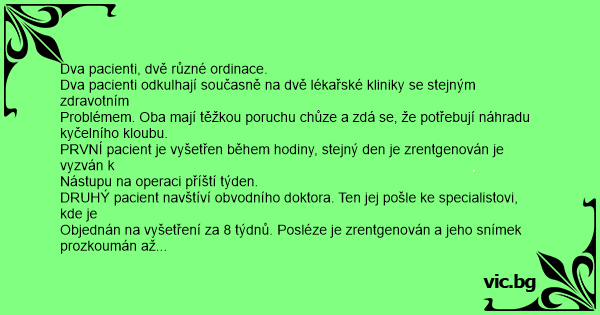 Dva pacienti odkulhají současně na dvě lékařské kliniky se stejným zdravotním