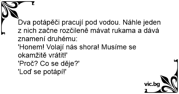 Dva potápěči pracují pod vodou. Náhle jeden z nich začne rozčileně mávat rukama a dává znamení druhému:
