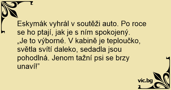 Eskymák vyhrál v soutěži auto. Po roce se hо ptají, jak je s ním spokojený.