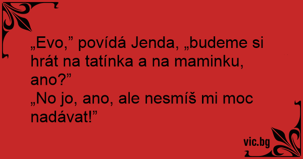 „Evo,” povídá Jenda, „budeme si hrát na tatínka a na maminku, ano?”