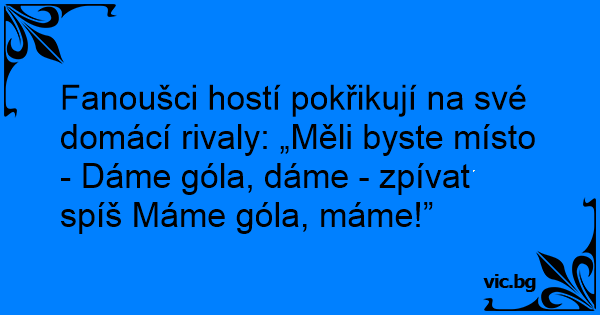 Fanoušci hostí pokřikují na své domácí rivaly: „Měli byste místo - Dáme góla, dáme - zpívat spíš Máme góla, máme!”
