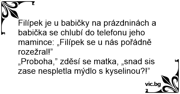 Filípek je u babičky na prázdninách a babička se chlubí do telefonu jeho mamince: „Filípek se u nás pořádně rozežral!”